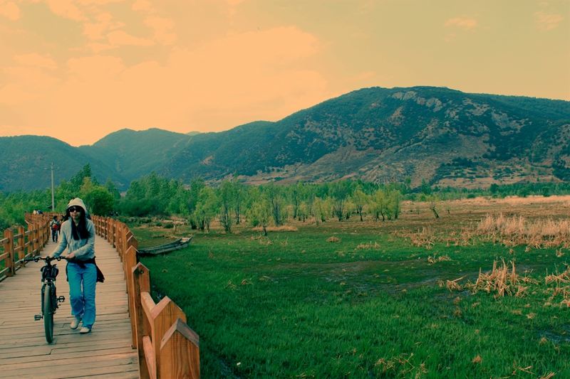 骑行泸沽湖,邂逅摩梭人的诗意风光头天在大洛水村歇脚,望着窗外晃眼的湖水就改了主意 —— 本来打算包车环湖的,这下非得骑一圈不可。找璞山云美那家客栈租了山地车,老板收了 500 块押金,还塞来个头盔,说 “云南情人滩到小洛水那段坡陡,可得捏紧刹车”。 早上八点推车上路,顺时针方向果然离湖更近,风裹着水草味往脸上扑。才骑两公里就撞见云南情人滩,格桑花沿着湖岸铺了半里地,赶紧停车拍照。湖水蓝得发透,能看见底下游过的小鱼,有个摩梭阿婆蹲在岸边洗野菜,问我们要不要吃荞麦粑粑,五块钱一个热乎的。 往前骑到里格半岛才知道麻烦,下到湖边的路没有公路,只能扛着车爬台阶上观景台。累得气喘吁吁时抬头一看,整个湖面像块碎了的蓝宝石,远处格姆神山藏在云里,值了!在观景台歇脚时,旁边大哥说他昨天逆时针骑,人少多了,但坡更陡,想想还是顺时针明智。 过了尼塞村就进四川境内了,路一下子平了好多,能放开了骑。路过泸源涯时停了停,崖下湖水深不见底,风一吹有点晃眼睛。中午到泸沽湖镇吃午饭,点了份鲜鱼汤,老板说湖里的鱼不用放味精,果然鲜得很,就是价格比云南那边贵几块钱。 下午骑到走婚桥,好多人在桥上拍照。当地摩梭小伙说这桥以前真是 “走婚” 必经之路,现在虽然成景点了,但晚上还能看见年轻人悄悄过桥。桥边草海全是金黄的芦苇,风吹起来沙沙响,藏着好多水鸟,吓得我赶紧捏刹车生怕惊着它们。 最意外是在小落水村碰到家访。跟着阿婆进了木楼,火塘里的火正旺,上方挂着祖母的肖像。阿婆给我们倒酥油茶,咸香的,喝不惯的可以加奶糖。还教我们刻摩梭图腾,我手笨刻坏了两个,阿婆笑着说 “没事,心意到了就行”。 骑到蒗放村时车胎突然瘪了,推着走了半公里才找到修车铺。老板说这路常有碎石扎胎,下次得提前检查胎压。等修车时看夕阳把湖面染成金箔色,旁边有游客骑共享电动车路过,说续了两次费还没骑到一半,幸好租了山地车。 天黑前终于回大洛水,腿都快不是自己的了。但躺在床上想起白天的事,比如尼塞村的摩梭小调,草海的风,还有阿婆递来的荞麦粑粑,觉得再累也值。对了,忘说最重要的 —— 防晒一定要涂厚点,我脖子都晒红了,还有海拔高,骑快了会喘,慢慢晃才是正经事。 |