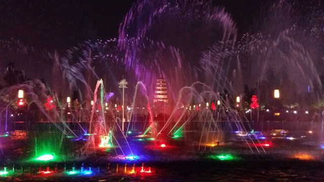 等天色暗下来,广场的音乐喷泉就该开了,夏季一般 19:30 开始,水柱跟着音乐跳起来,最高能喷到几十米,还会变颜色。要是赶上周五六,还有无人机表演,几百架无人机在天上拼出大桥、海鸥的图案,和地上的喷泉呼应,整个广场全是欢呼声。不过得早点找位置,晚了只能站在后排踮脚看。